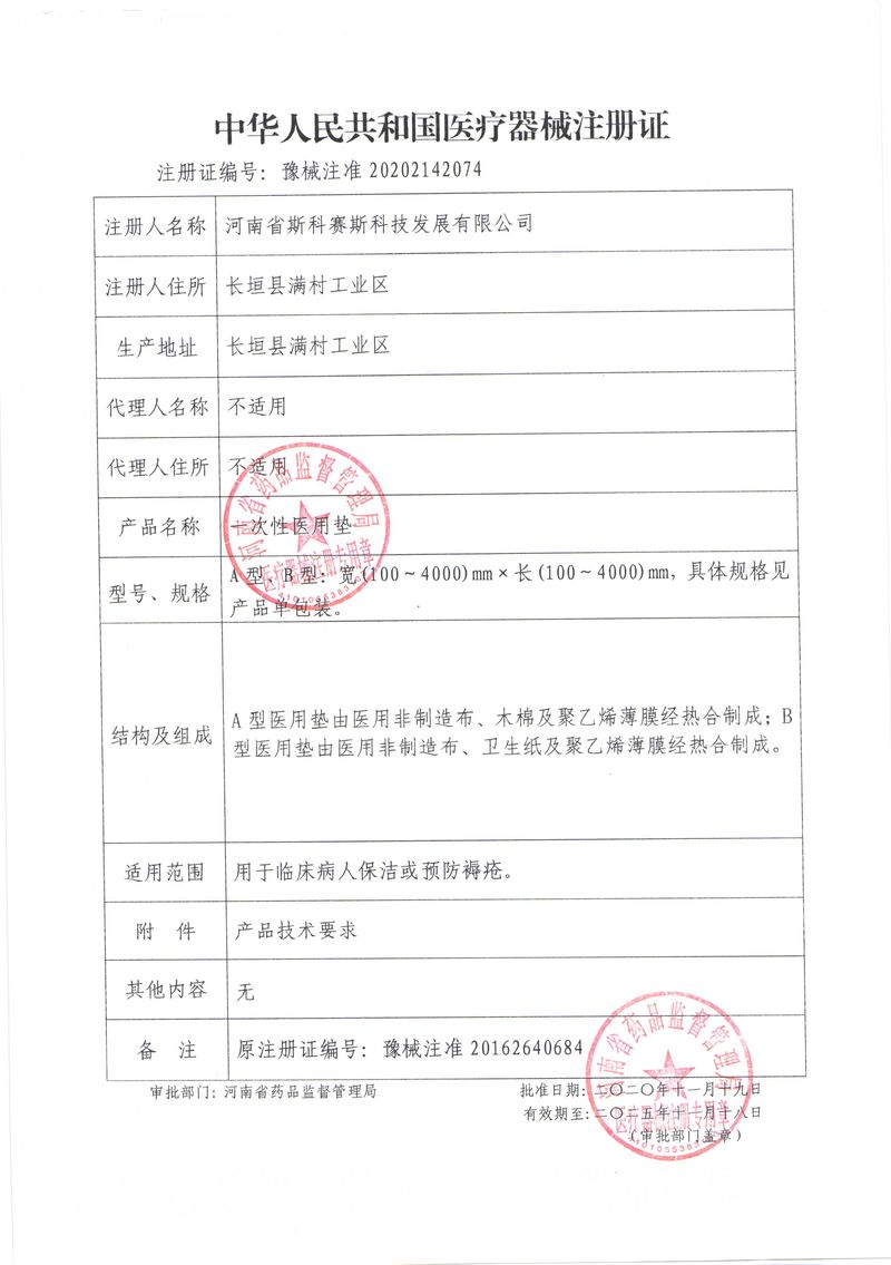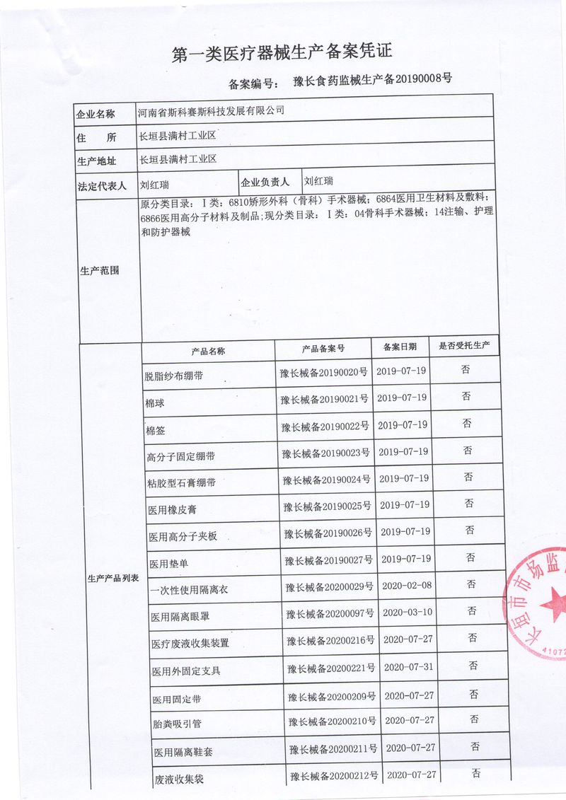 河南省斯科賽斯科技發(fā)展有限公司創(chuàng)建于 2011 年,位于“中國(guó)醫(yī)療耗材之都”- 河南省長(zhǎng)垣縣,西臨 308 省道,南靠新菏鐵路,北依長(zhǎng)濟(jì)高速,交通便捷,經(jīng)濟(jì)發(fā)達(dá),環(huán)境優(yōu)美。斯科賽斯積極進(jìn)入醫(yī)療健康和服務(wù)領(lǐng)域,秉承為用戶創(chuàng)造價(jià)值的理念,專注于醫(yī)用耗材解決方案的研發(fā)和運(yùn)營(yíng),并為用戶提供完善的產(chǎn)品解決方案;  斯科賽斯主要生產(chǎn)醫(yī)用麻醉系列、醫(yī)用高分子系列、醫(yī)用敷料包系列、醫(yī)用無紡布系列、醫(yī)用防護(hù)系列、醫(yī)用脫脂棉系列、生物材料制品類等七大類、100 多個(gè)品種、400 多個(gè)規(guī)格的產(chǎn)品。公司占地面積約 30000 平方米,建筑面積20000 平方米,擁有 10 萬級(jí)的凈化車間總面積 10000 平方米。擁有國(guó)際先進(jìn)水平的生產(chǎn)設(shè)備和檢測(cè)儀器,技術(shù)裝備精良,檢測(cè)手段完善,為醫(yī)療行業(yè)的不斷發(fā)展進(jìn)步提供保障。公司順利通過 ISO9001、ISO13485 質(zhì)量管理體系認(rèn)證?! ∷箍瀑愃箞?jiān)持研發(fā)高科技新產(chǎn)品,力爭(zhēng)在醫(yī)療器械關(guān)鍵領(lǐng)域取得技術(shù)和研發(fā)的重大突破;立足國(guó)內(nèi)和國(guó)際兩個(gè)市場(chǎng),逐步實(shí)現(xiàn)管理理念、經(jīng)營(yíng)機(jī)制、人力資源、技術(shù)、產(chǎn)品、市場(chǎng)等全方位對(duì)接,提高企業(yè)的核心競(jìng)爭(zhēng)力;過去的歲月里,斯科賽斯砥礪前行,誠(chéng)信務(wù)實(shí),銳意進(jìn)取,不斷創(chuàng)新,用自己的睿智和辛勞,以富有責(zé)任感的使命,在探索中追求,在追求中超越,致力于成為值得信賴的醫(yī)療用品生產(chǎn)企業(yè)!在未來的日子里,斯科賽斯將一如既往豪情滿懷,信心百倍,攜手并肩,執(zhí)著追求,向更高的的目標(biāo)前進(jìn),鑄造新的輝煌!